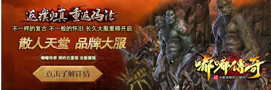 找回曾经的记忆..唤起年少时候对热血传奇的那份真挚!燃烧热血..让我们再次征战..嘟嘟传奇实力回归,打造私服界难度系数最高、装备数据最值钱、最耐玩的原味传奇,我们在等你!!【详情】